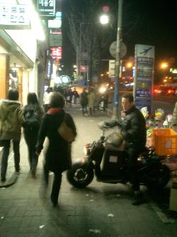 Motorroller sind super. Schnell, wendig, sparsam und oft sehen sie auch noch spitze aus. Motorroller fahren auf der Strasse, manch einer benutzt sie im Gelände oder auf der Rennstrecke. Wo sie aber ganz sicher nicht hin gehören sind die völlig überfüllten Bürgersteige Seouls.