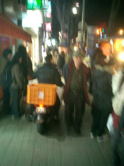 Man kommt aus einer Bar und ist vielleicht nicht mehr so wachsam, weil man alkoholische Getränke konsumiert hat und sich nun mehr auf, anstatt mit der Begleitung konzentriert. Erschwerend kommt noch hinzu das die meisten Roller schon Antiquariate sind und ohne Licht daher kommen. Die Bürgersteige werden zur Todesfalle. Schon mehrmals konnte ich mich nur noch in letzter Sekunde hinter eine Absperrung oder einen Baum retten. Ein Freund von einer Austauschstudentin aus Nepal die letztes Jahr hier studiert hat, soll beobachtet haben wie ein unachtsamer Gast tatsächlich überrollt wurde... 2 Mal hintereinander... War bestimmt kein schöner Anblick...